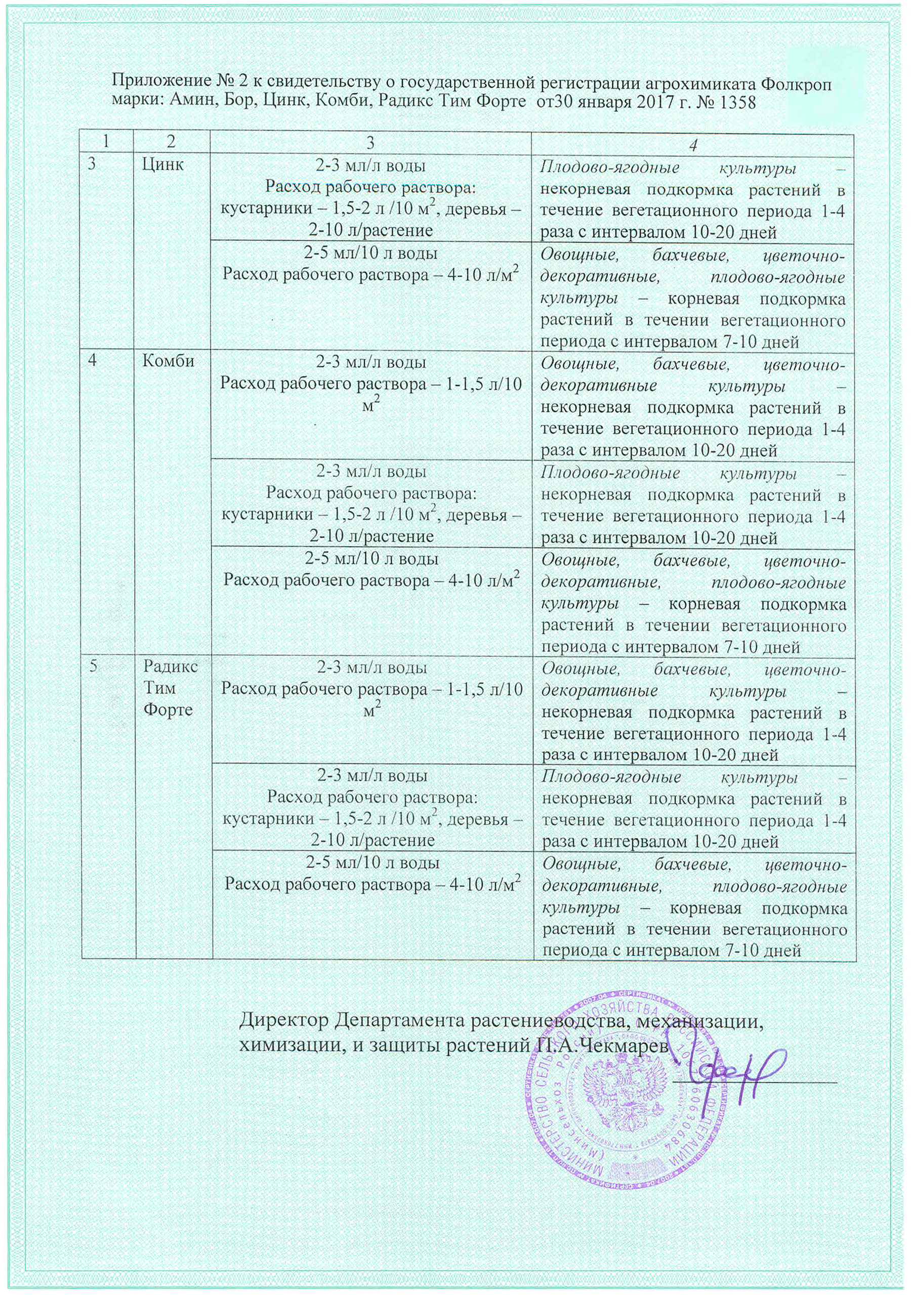 Свидетельство о государственной регистрации пестицида или агрохимиката № 1358 от 30 января 2017 г.